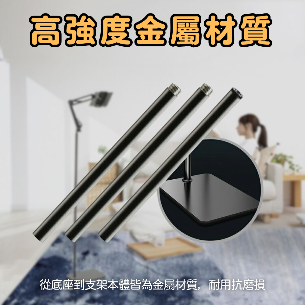 支架最大的特色在於其靈活的懸臂式結構,支持多軸角度調節與 360 度旋轉,無論您是坐在沙發上、躺在床上,或是站在工作台前,都能隨意調整至最符合人體工學的視覺高度與角度。加重型的落地底座設計,確保支架在全展開狀態下依然穩如泰山,不會產生晃動或傾倒,提供安心的使用保障。