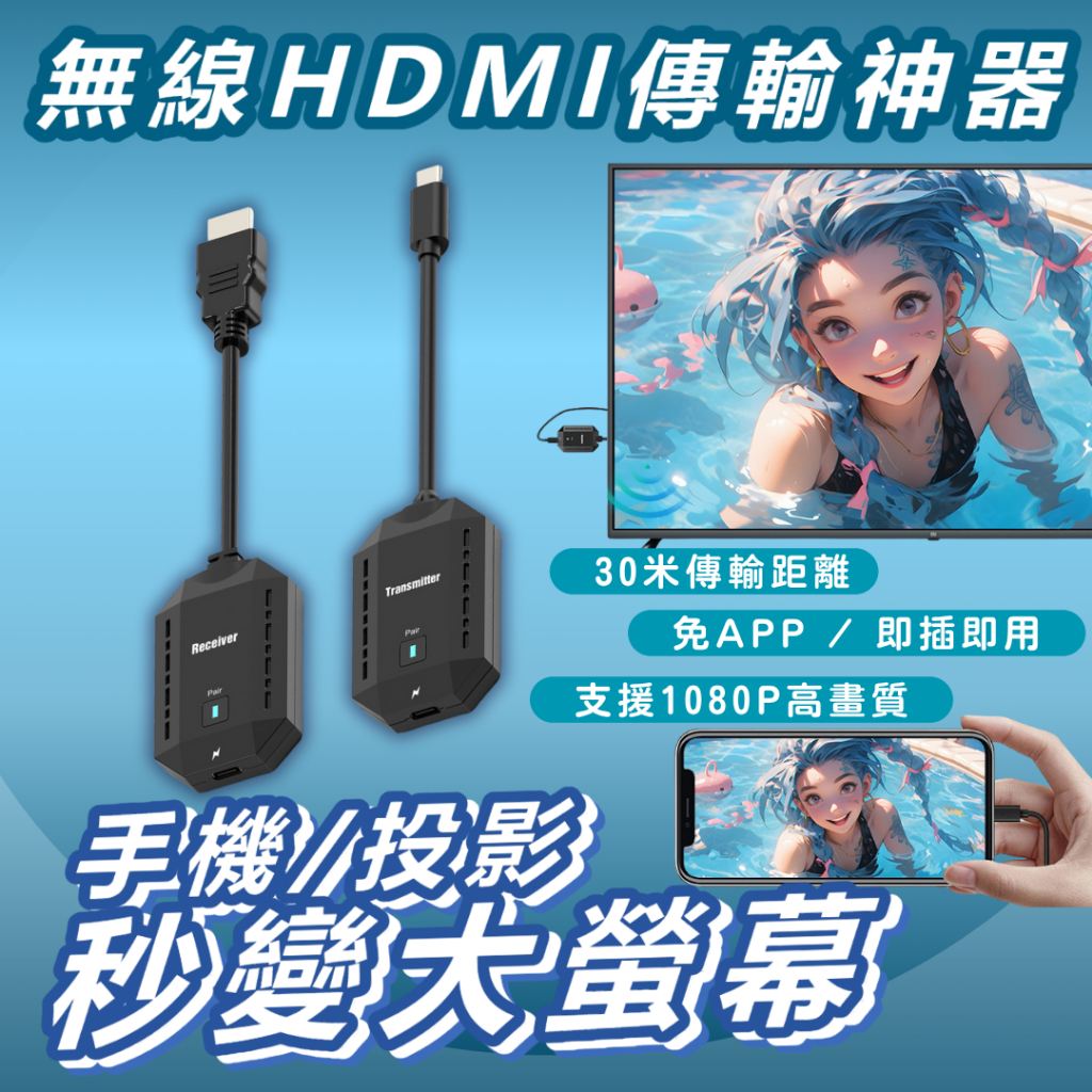 這款「無線HDMI傳輸器」具備5G高速傳輸、1080P高畫質、30米遠距離穩定訊號,專為簡報、娛樂、會議、遊戲打造。