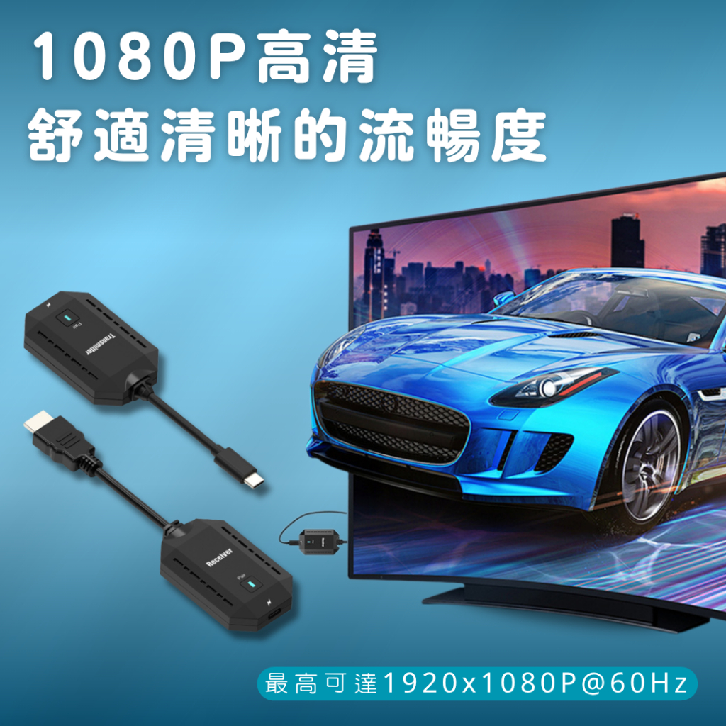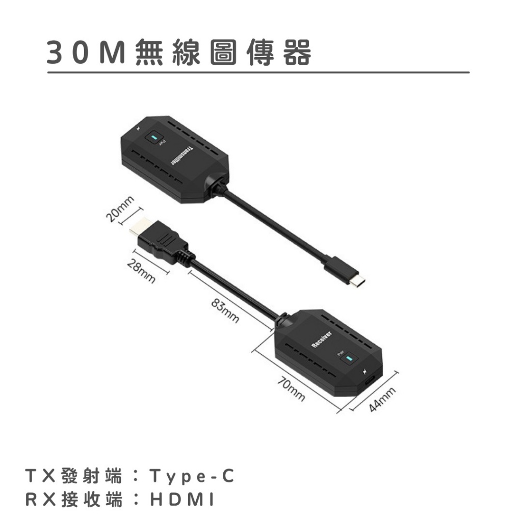 ✅ 發射端 Type-C 免供電|接收端需供電