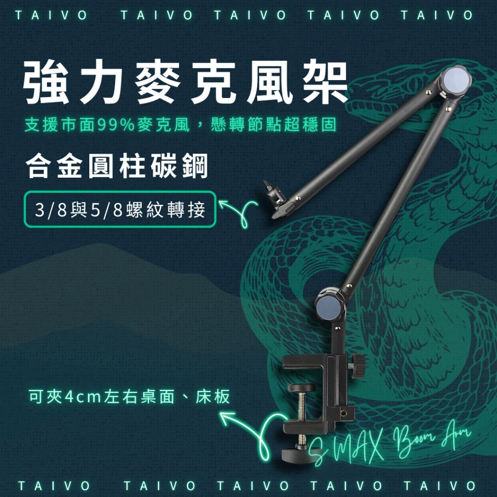 螺絲規格:預設 3/8 吋,附轉接頭轉為 5/8 吋,兼容大多數麥克風