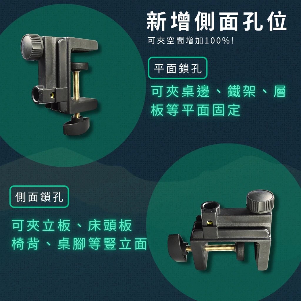 | 防護設計 | 桌夾內側附有防滑墊,保護桌面不刮傷 |