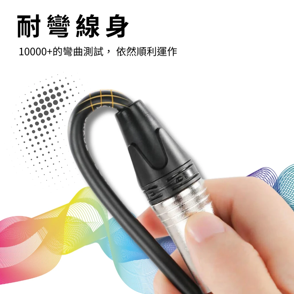 線材內部選用高純度無氧銅導體,大幅提升了訊號的傳導效率,減少傳輸過程中的高頻損耗,讓聲音表現更加通透自然。外層包覆高彈性且耐磨的環保材質,不僅手感滑順、不易纏繞,更具備強韌的抗拉扯特性,即使在頻繁更換設備或戶外移動錄音的環境下,依然能維持穩定的連線表現。