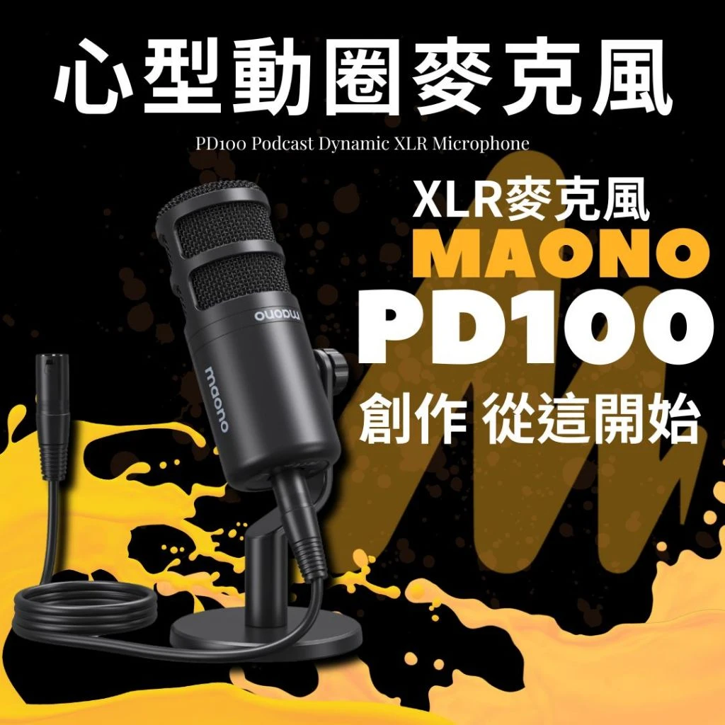 MAONO 閃克 PD100 是一款具有心形指向性的動圈話筒,可降低背景噪音以獲得更清晰的音頻,