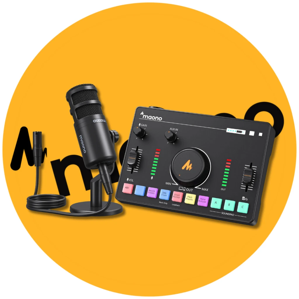 Maonocaster AMC2 NEO 聲卡與 Maono PD100 動圈麥克風的直播套裝,為您提供專業的音訊解決方案。無論是播客、直播還是音樂製作,這套裝置都能提升音質,輕鬆連接各種設備,如 iPhone、Android、Windows 和 Mac 系統,兼容所有直播軟體。先進的技術和高品質的設計,讓您無論在任何平台上都能享受清晰高品質的聲音。