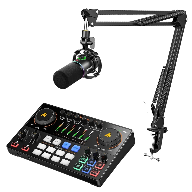 這款 MAONO AME2 旗艦版聲卡 和 MAONO PD200XS 動圈式電腦麥克風 直播套裝是專為音樂、播客、錄音和直播愛好者設計的完美組合。配備 MAONO PD200XS 麥克風,支持各種手機與電腦應用,並且支援多段 RGB 燈光效果,讓您的直播和錄音過程更具娛樂性和互動性。MAONO AME2 聲卡 配合專業功能,讓您的音頻處理更加精確,提供清晰高品質的音效,適用於各類音訊應用。