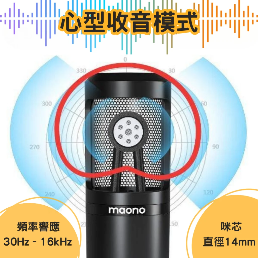 • 心型指向收音,抑制背景噪音,專注收錄人聲