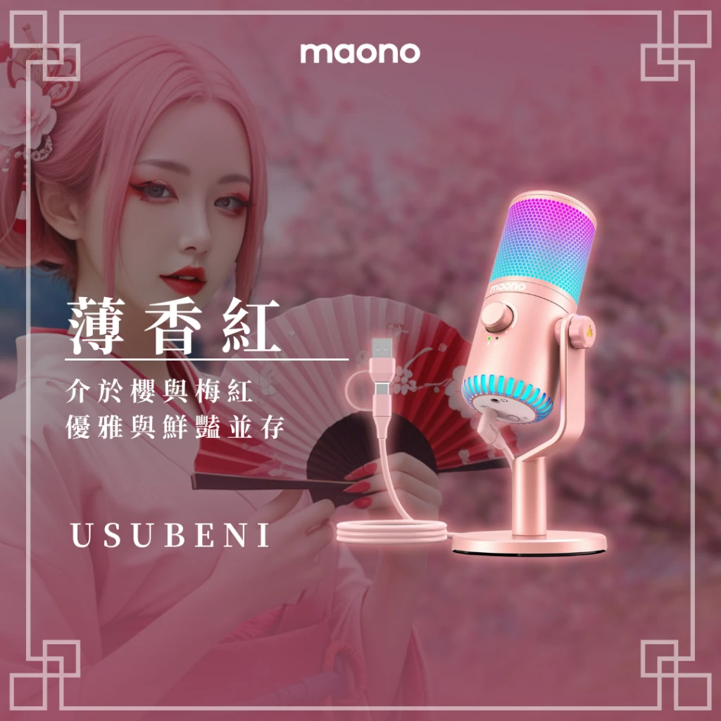 | 燈光效果 | 可自訂動態 RGB 燈效 (支援實體按鈕或 Maono Link 軟體調整) |