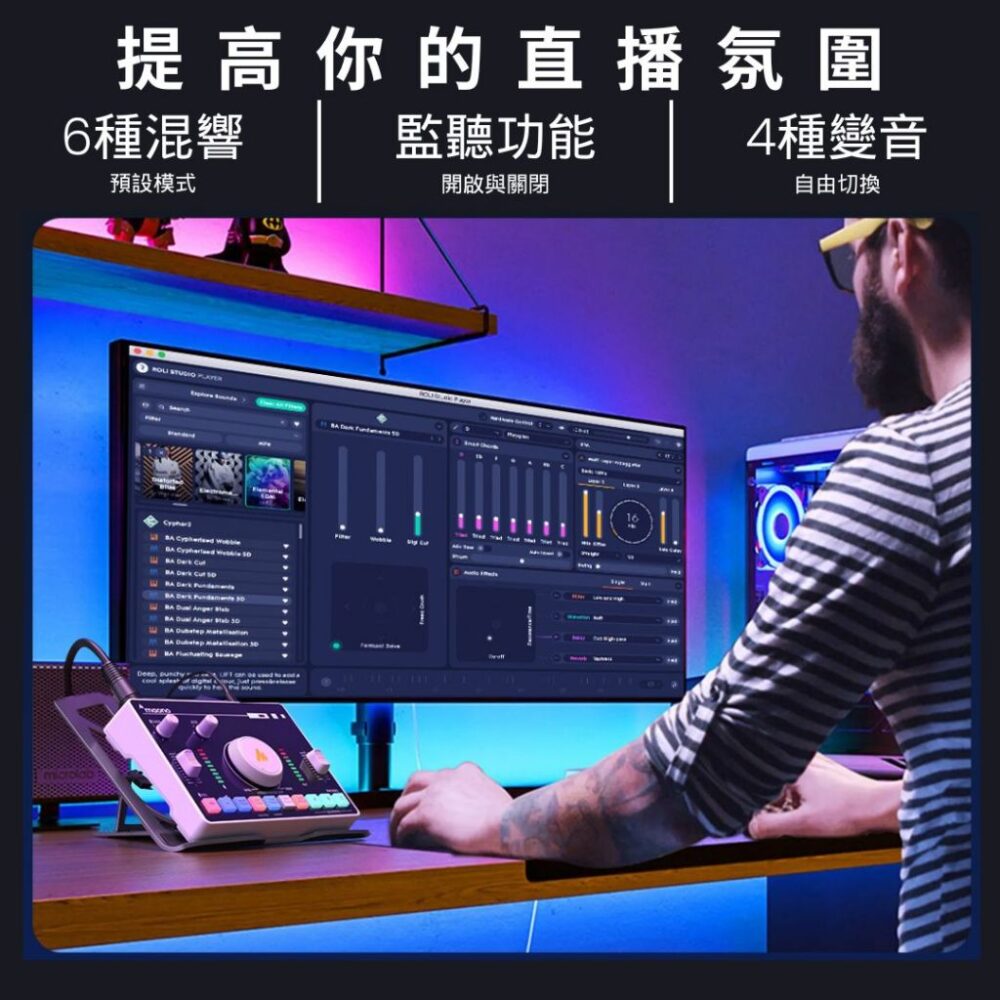 6 預設混響場景與 4 變聲器:創造更多元的音效效果,吸引觀眾互動。