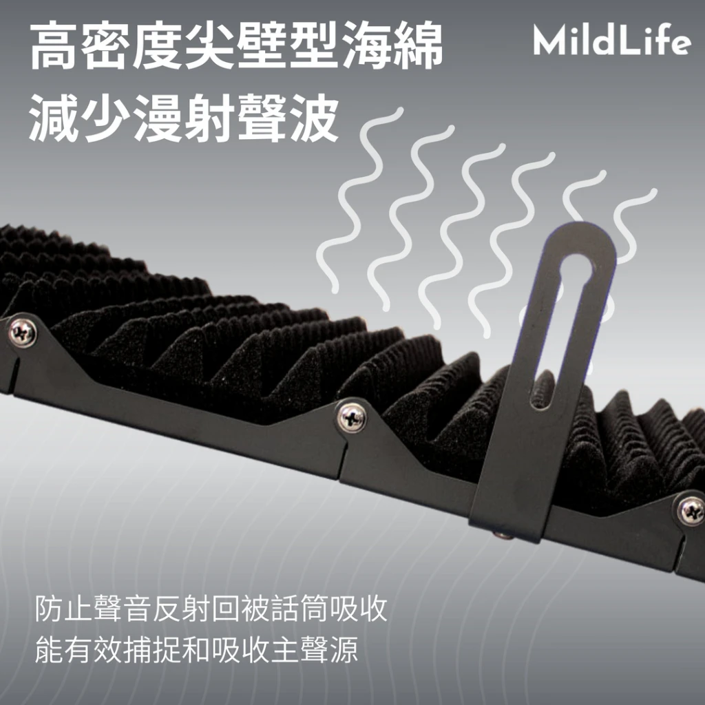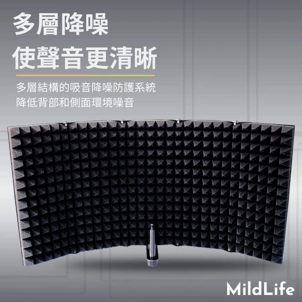 | 結構特色 | 多板折疊設計:可根據錄音需求靈活調整包圍角度,確保收音純淨 |