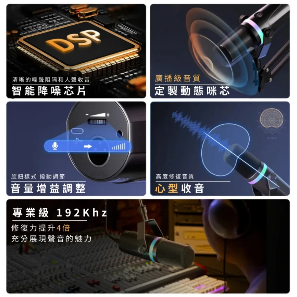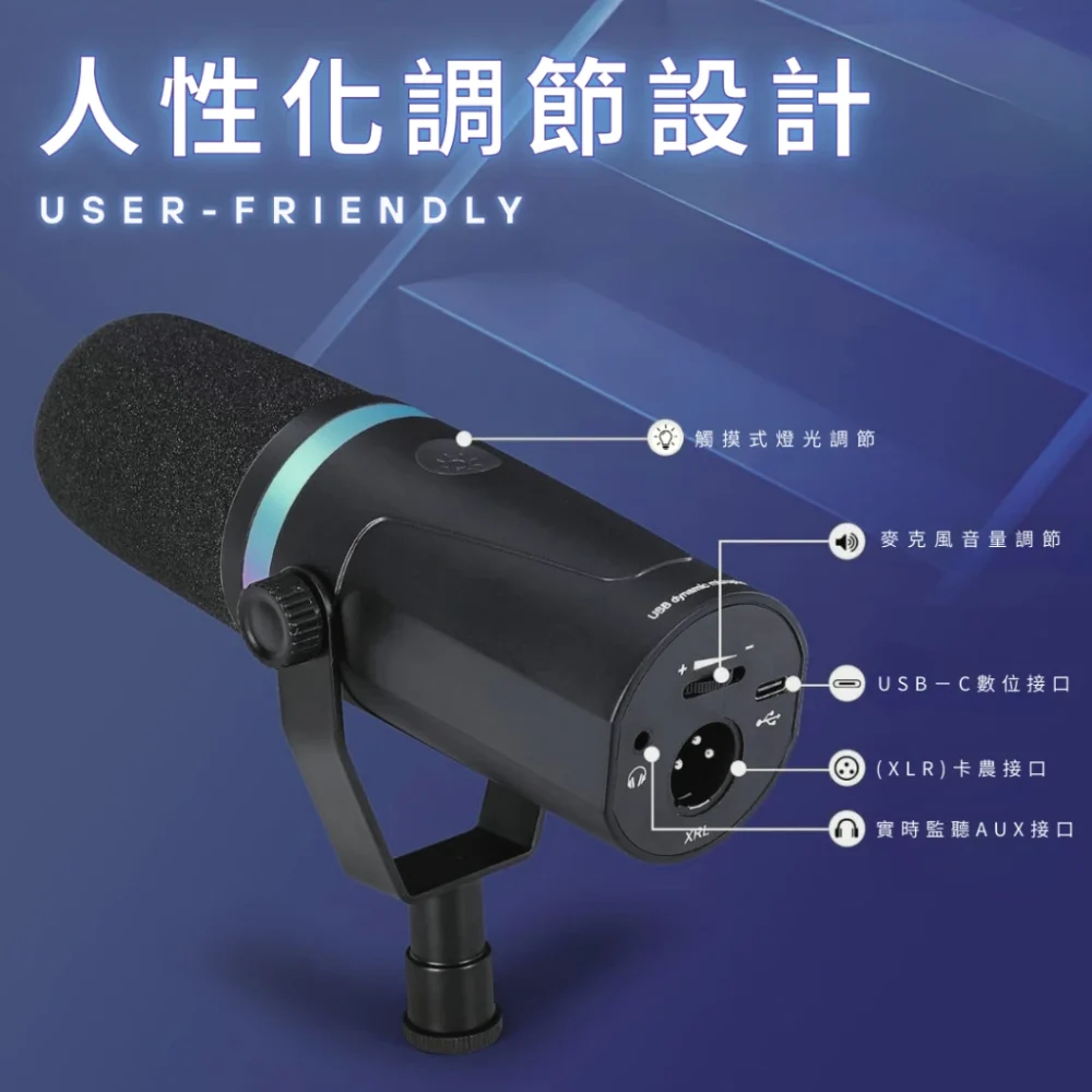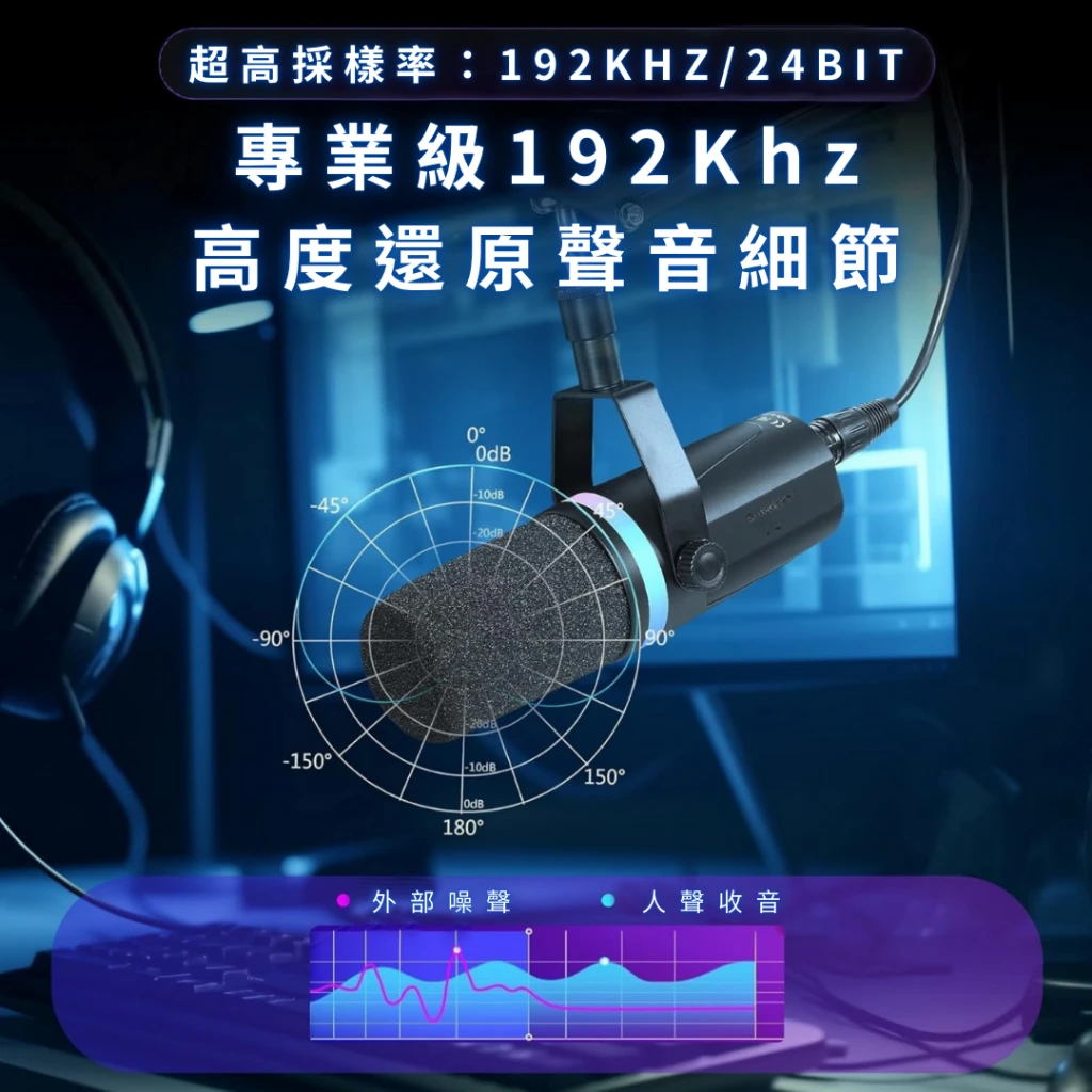電競玩家、直播主、Podcaster 必備! 雙模式接口(XLR + USB-C),適用於各種場景,滿足你的專業錄音需求!