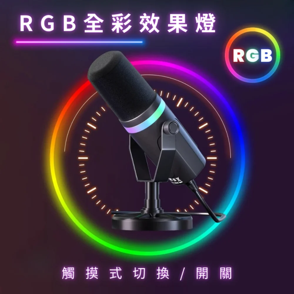 • 內建 全彩RGB燈環,觸控切換燈光模式,讓你的直播間更具科技感。