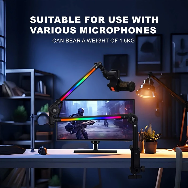 讓您的直播與錄音環境更具科技感!這款 RGB燈光懸臂支架 擁有穩定耐用的設計,