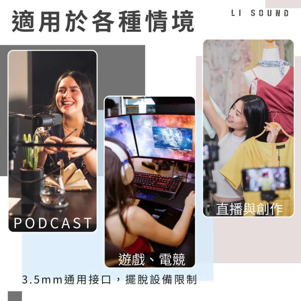 | 主要用途 | 個人直播、K歌、線上教學、語音聊天、Podcast 錄製 |