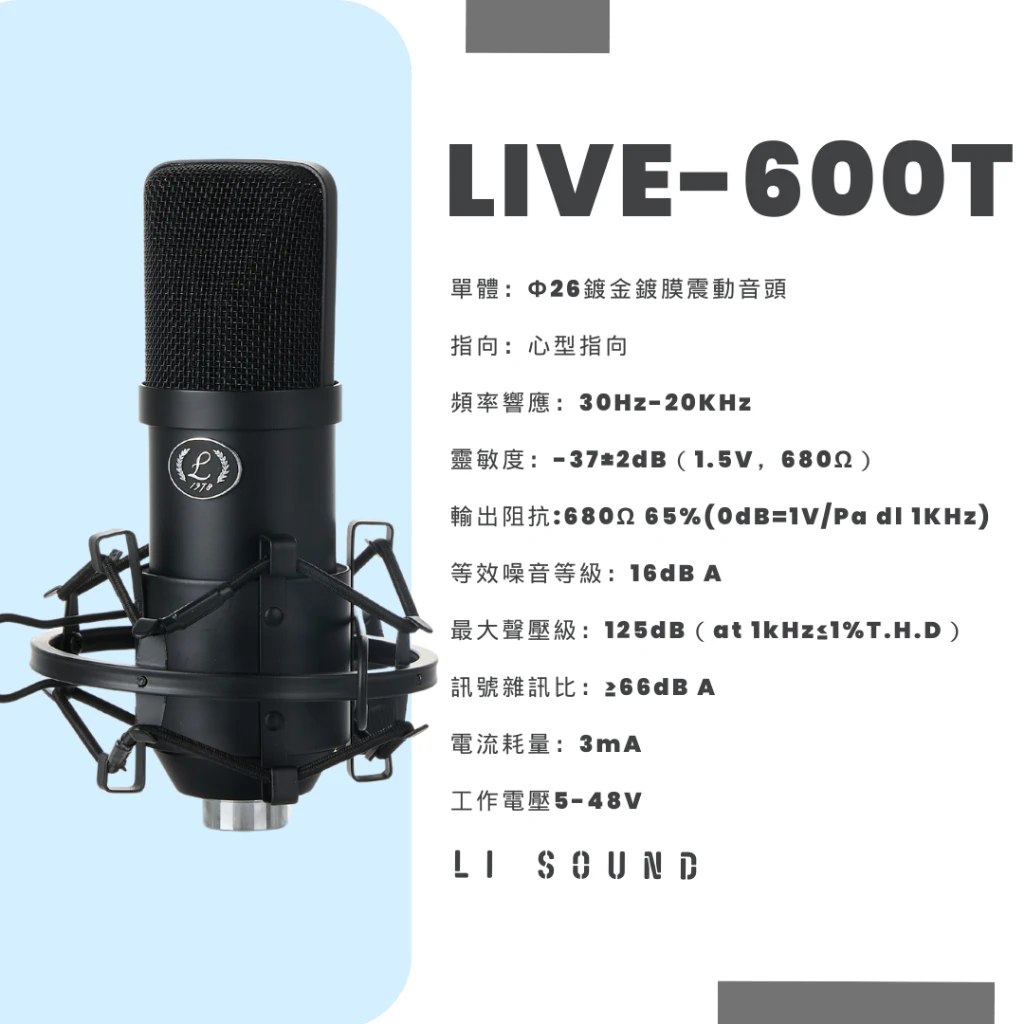 | 產品名稱 | LIVE 600 電容麥克風 (MIT 臺灣製造) |