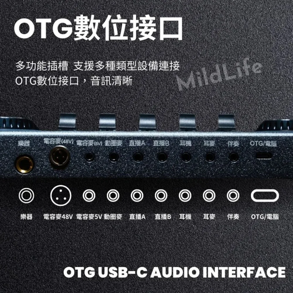 - 手機直插:支持IPHONE直插直播(需購買OTG音頻線)