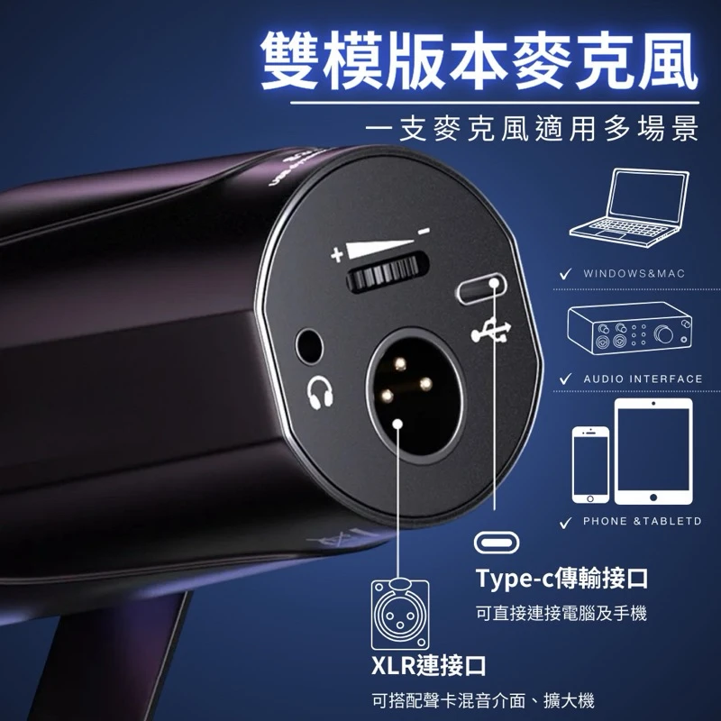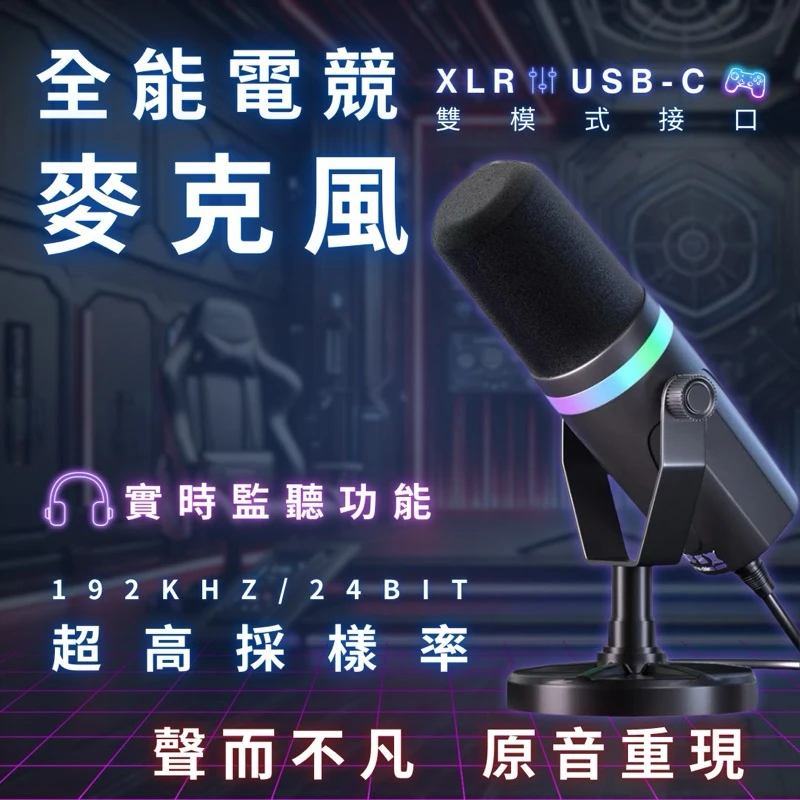 電競玩家、直播主、Podcaster 必備! 雙模式接口(XLR + USB-C),適用於各種場景,滿足你的專業錄音需求!