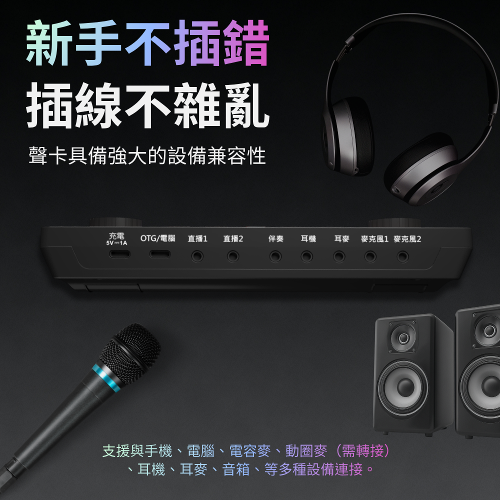 支援手機、電腦、電容麥、動圈麥、耳機與音箱等多種設備,應用彈性高。