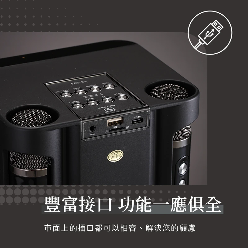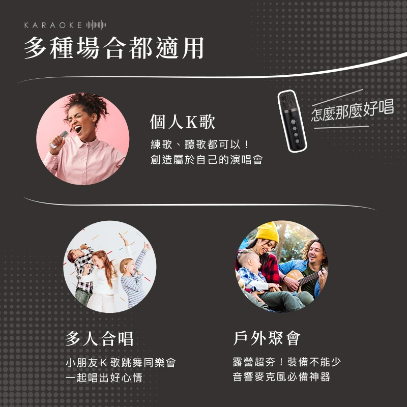 | 產品特色 | 一鍵消除原聲、雙麥克風連線歡唱、DSP 獨立數字音頻晶片、AI 美聲算法、智能防嘯叫 |